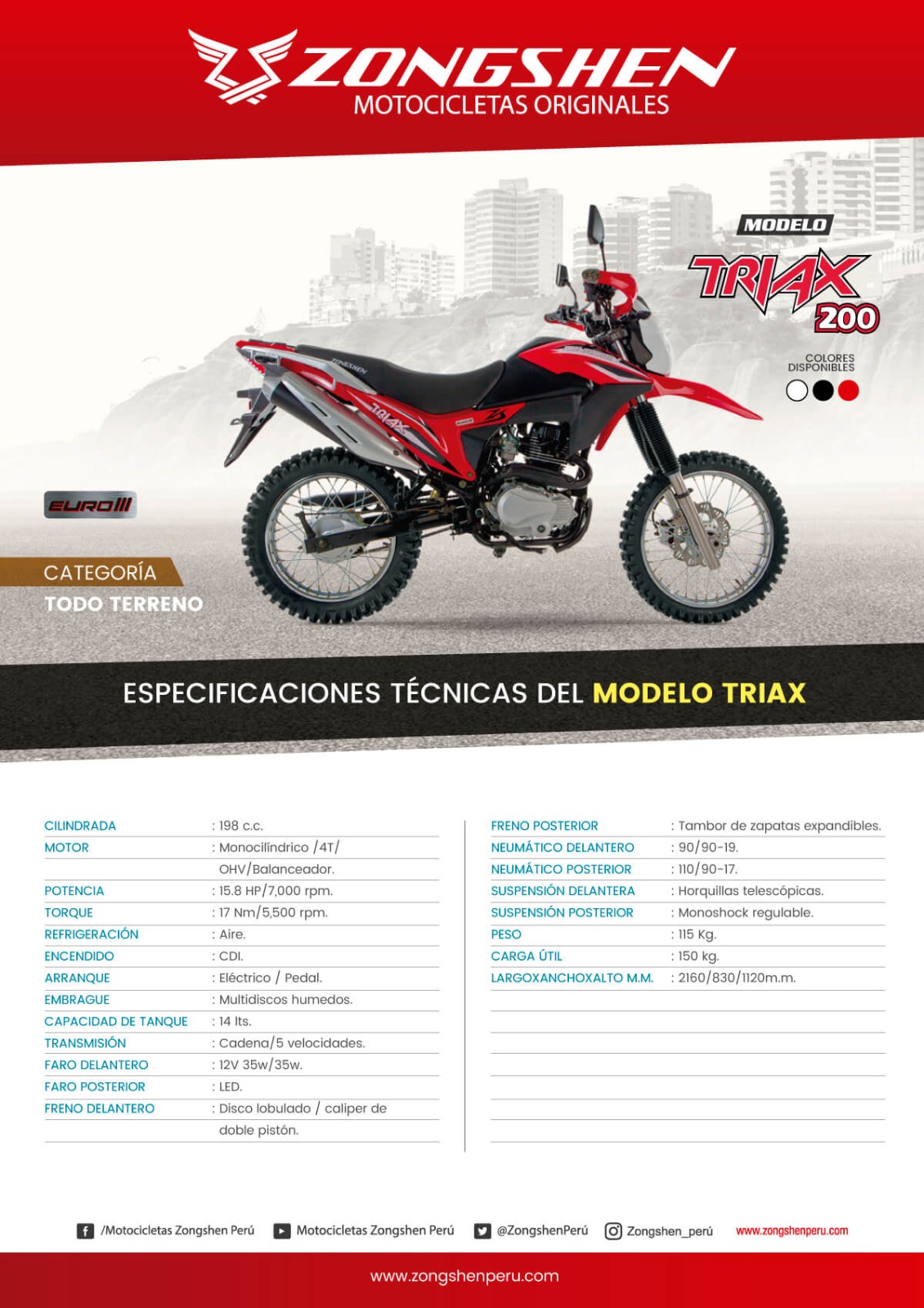 | Color | Blanco, Negro, Rojo |